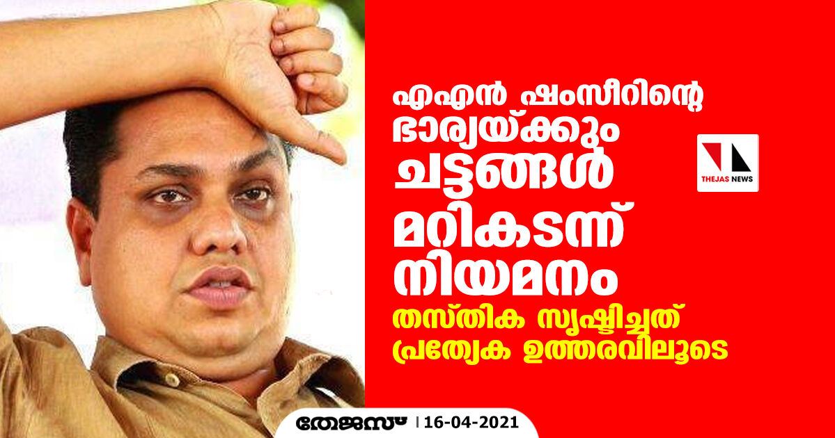 എഎൻ ഷംസീറിന്റെ ഭാര്യയ്ക്കും ചട്ടങ്ങൾ മറികടന്ന് നിയമനം, തസ്തിക സൃഷ്ടിച്ചത് പ്രത്യേക ഉത്തരവിലൂടെ