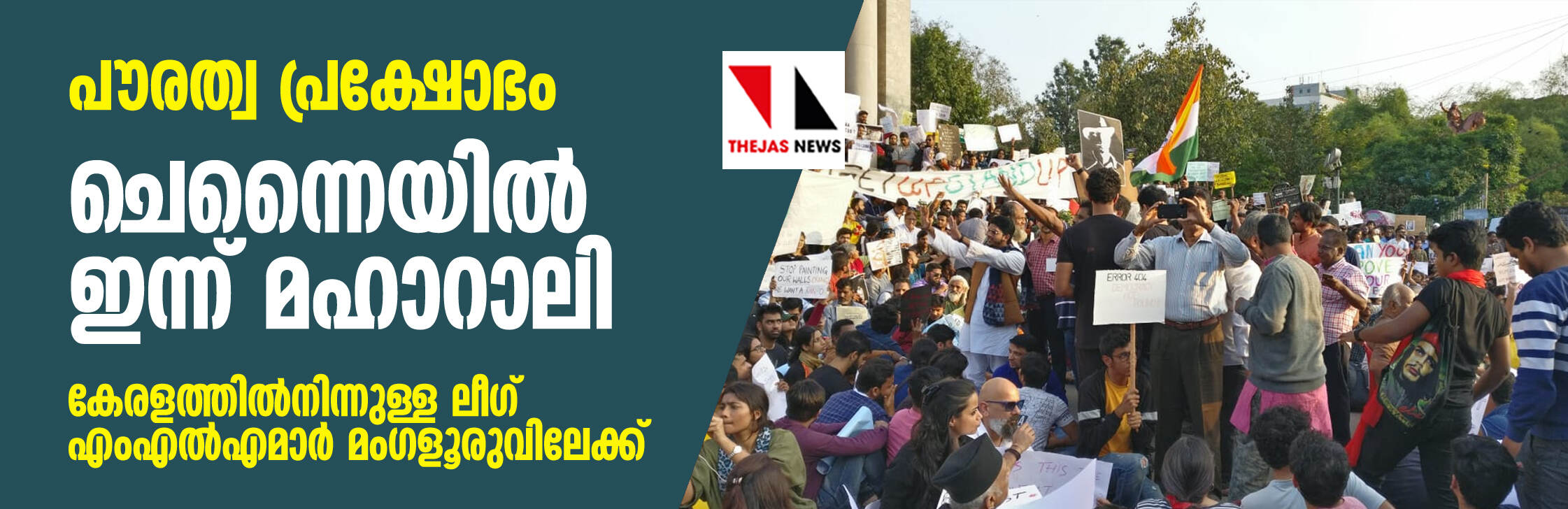 പൗരത്വ പ്രക്ഷോഭം: ചെന്നൈയില് ഇന്ന് മഹാറാലി, കേരളത്തില്നിന്നുള്ള ലീഗ് എംഎല്എമാര് മംഗളൂരുവിലേക്ക്