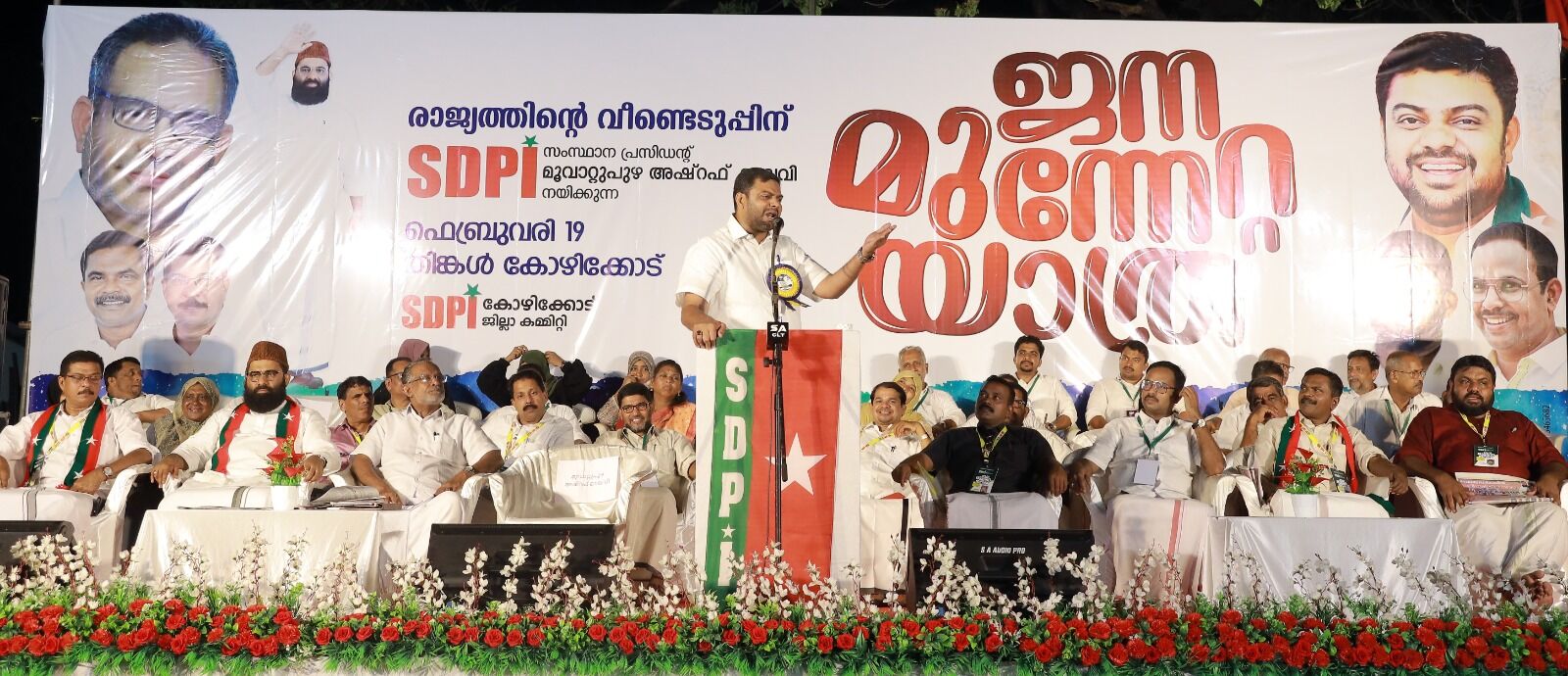 പത്തു വര്ഷത്തെ തുടര്ഭരണത്തിലൂടെ രാജ്യത്തിന്റെ ഭരണഘടന ഉറപ്പാക്കുന്ന സകല നന്മകളെയും തകര്ത്തെറിഞ്ഞ, സാമ്പത്തികമായി രാജ്യത്തെ തകര്ത്ത, തൊഴിലില്ലായ്മയും ദാരിദ്ര്യവും കൊണ്ട് പൊറുതിമുട്ടുന്ന പൗരസമൂഹത്തെ സൃഷ്ടിച്ച ബിജെപി ദുര്ഭരണത്തെ തുറന്നുകാട്ടാന് കെല്പ്പുള്ള എസ്ഡിപിഐയില് പൗരസമൂഹം പ്രതീക്ഷയര്പ്പിക്കുന്നു എന്നതാണ് യാത്രയ്ക്ക് ലഭിക്കുന്ന ജനപിന്തുണ വ്യക്തമാക്കുന്നതെന്നും നെല്ലൈ മുബാറക് കൂട്ടിച്ചേര്ത്തു.