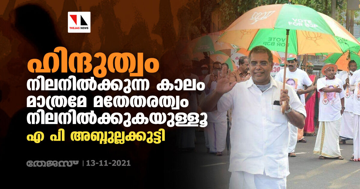 ഹിന്ദുത്വം നിലനില്ക്കുന്ന കാലം മാത്രമേ മതേതരത്വം നിലനില്ക്കുകയുള്ളൂ: എ പി അബ്ദുല്ലക്കുട്ടി