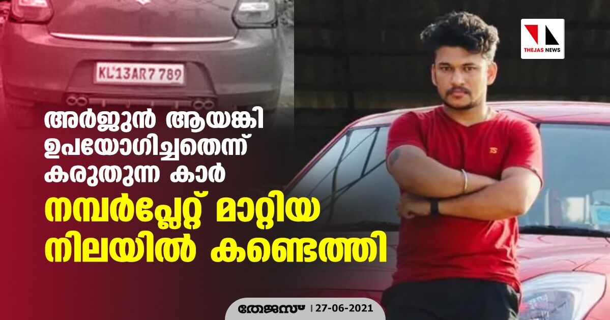 അര്ജുന് ആയങ്കി ഉപയോഗിച്ചതെന്ന് കരുതുന്ന കാര് നമ്പര്പ്ലേറ്റ് മാറ്റിയ നിലയില് കണ്ടെത്തി