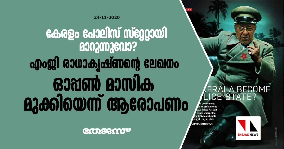 കേരളം പോലിസ് സ്റ്റേറ്റായി മാറുന്നുവോ?; എംജി രാധാകൃഷ്ണന്റെ ലേഖനം ഓപ്പണ് മാസിക മുക്കിയെന്ന് ആരോപണം