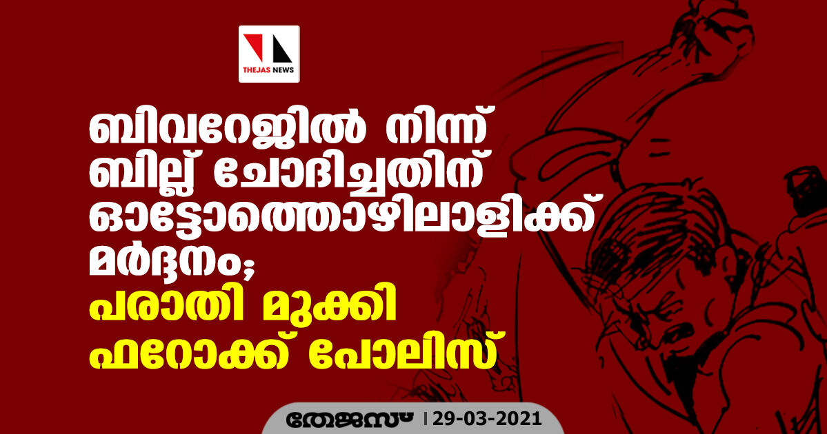 ബിവറേജിൽ നിന്ന് ബില്ല് ചോദിച്ചതിന് ഓട്ടോത്തെഴിലാളിക്ക് മർദ്ദനം; പരാതി മുക്കി ഫറോക്ക് പോലിസ്