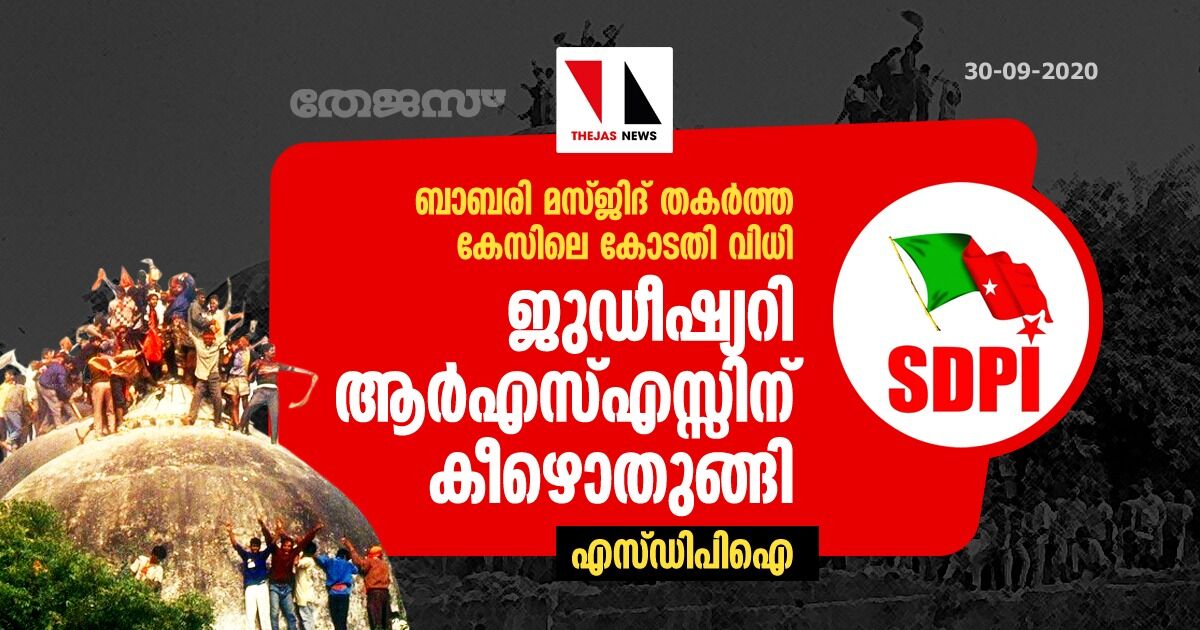 ബാബരി മസ്ജിദ് തകര്ത്ത കേസിലെ കോടതി വിധി: ജുഡീഷ്യറി ആര്എസ്എസ്സിന് കീഴൊതുങ്ങി- എസ് ഡിപിഐ