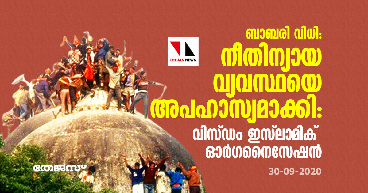 ബാബരി വിധി: നീതിന്യായ വ്യവസ്ഥയെ അപഹാസ്യമാക്കി: വിസ്ഡം ഇസ്ലാമിക് ഓര്ഗനൈസേഷന്