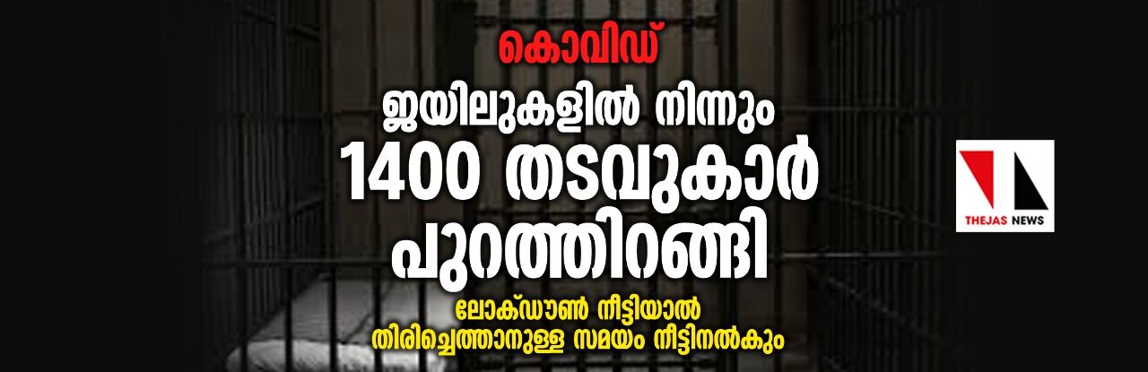 കൊവിഡ്: സംസ്ഥാനത്തെ ജയിലുകളിൽ നിന്നും 1400 തടവുകാർ പുറത്തിറങ്ങി