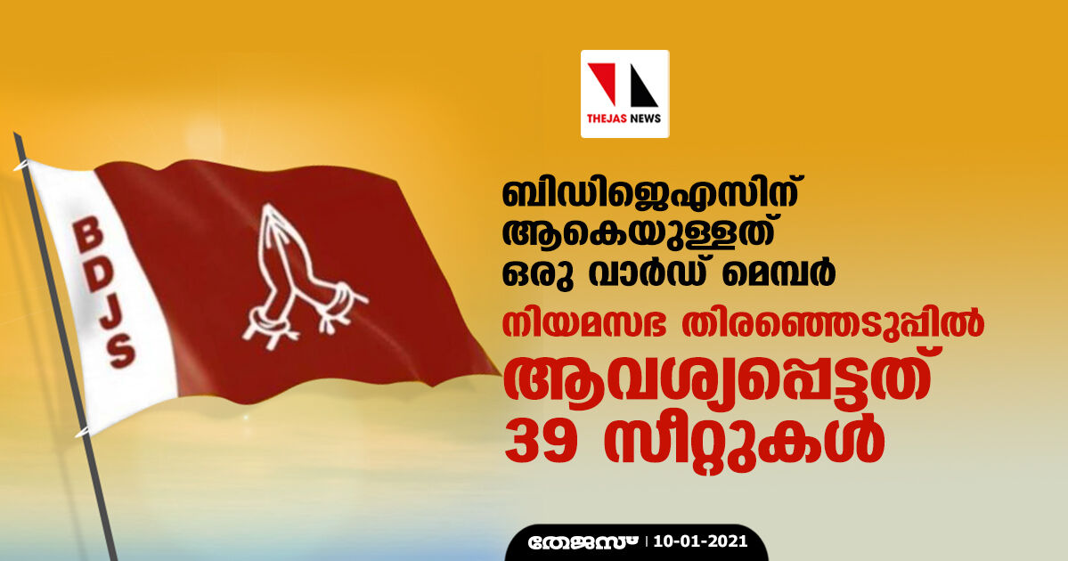 ബിഡിജെഎസിന് ആകെയുള്ളത് ഒരു വാർഡ് മെമ്പർ; നിയമസഭ തിരഞ്ഞെടുപ്പിൽ ആവശ്യപ്പെട്ടത് 39 സീറ്റുകൾ