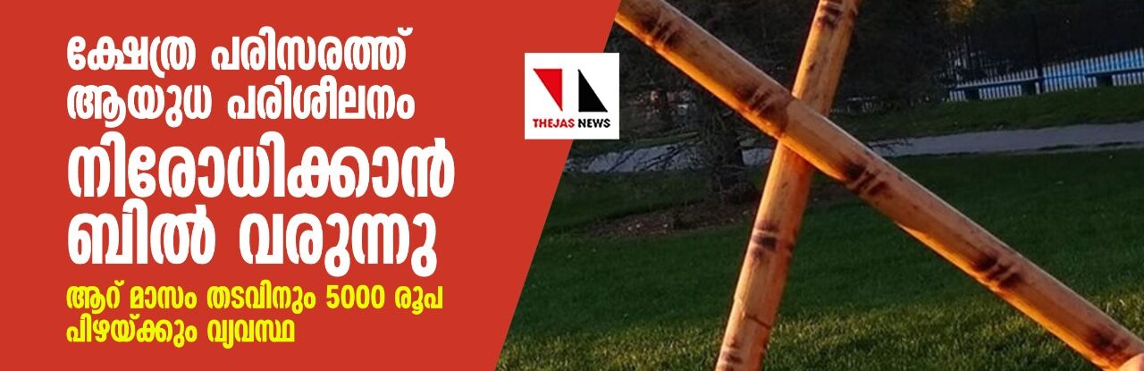 ക്ഷേത്ര പരിസരത്ത് ആയുധ പരിശീലനം നിരോധിക്കാന് ബില് വരുന്നു; ആറ് മാസം തടവിനും 5000 രൂപ പിഴയ്ക്കും വ്യവസ്ഥ