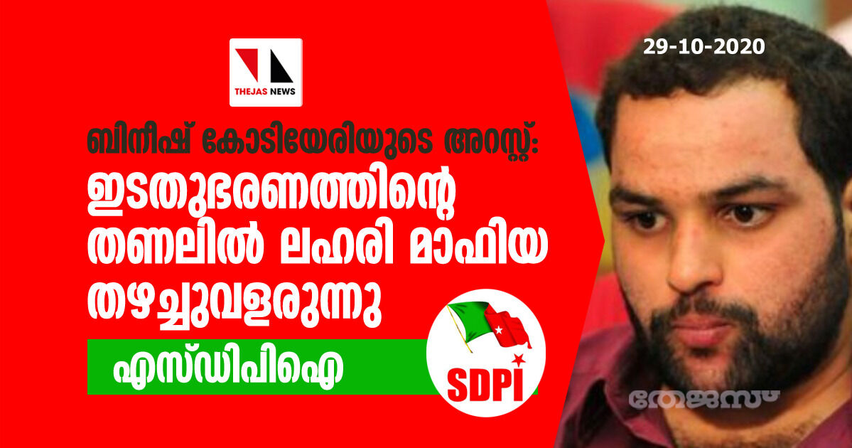 ബിനീഷ് കോടിയേരിയുടെ അറസ്റ്റ്: ഇടതുഭരണത്തിന്റെ തണലില് ലഹരി മാഫിയ തഴച്ചുവളരുന്നു- എസ് ഡിപിഐ