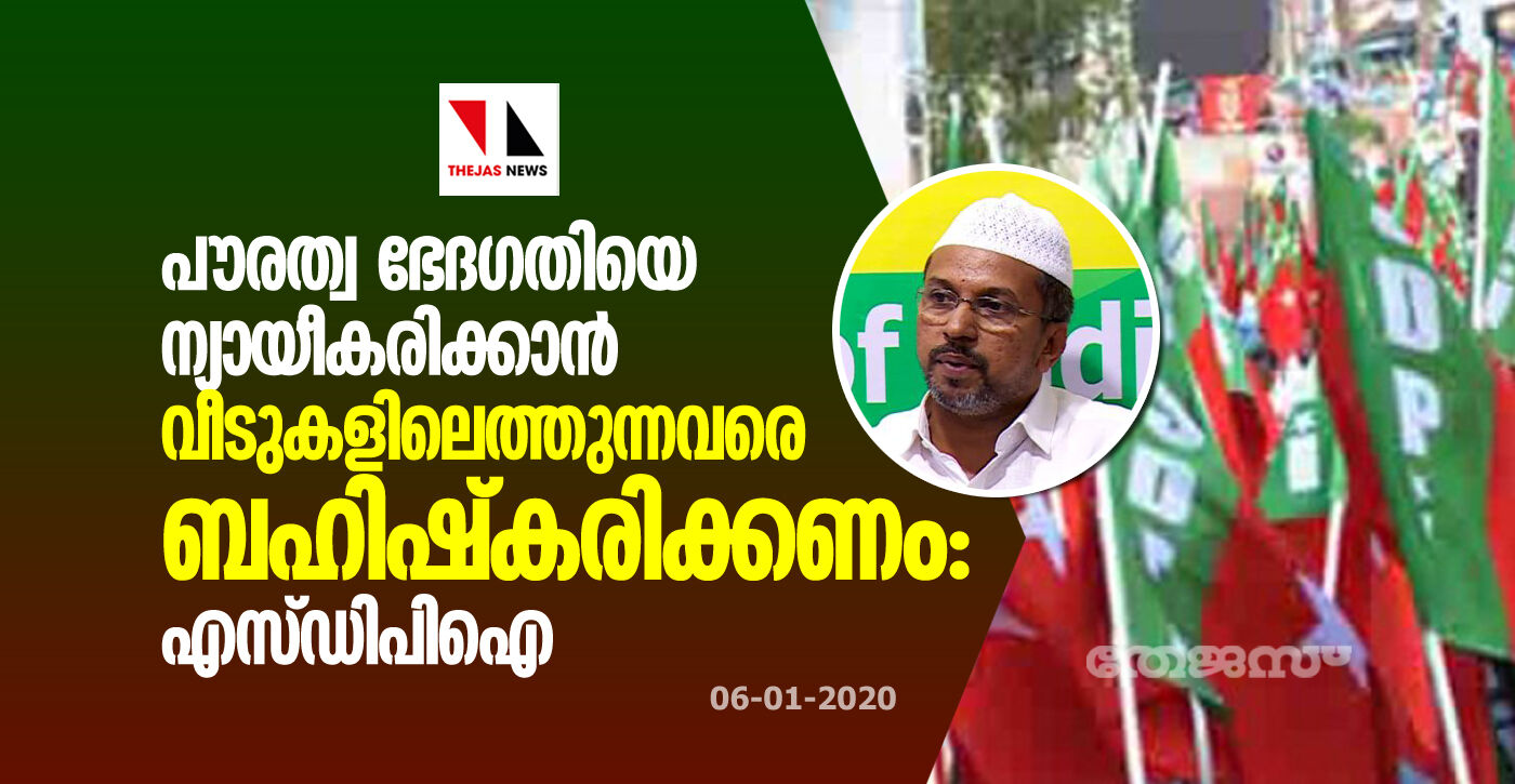 പൗരത്വ ഭേദഗതിയെ ന്യായീകരിക്കാന് വീടുകളിലെത്തുന്നവരെ ബഹിഷ്കരിക്കണം: എസ്ഡിപിഐ