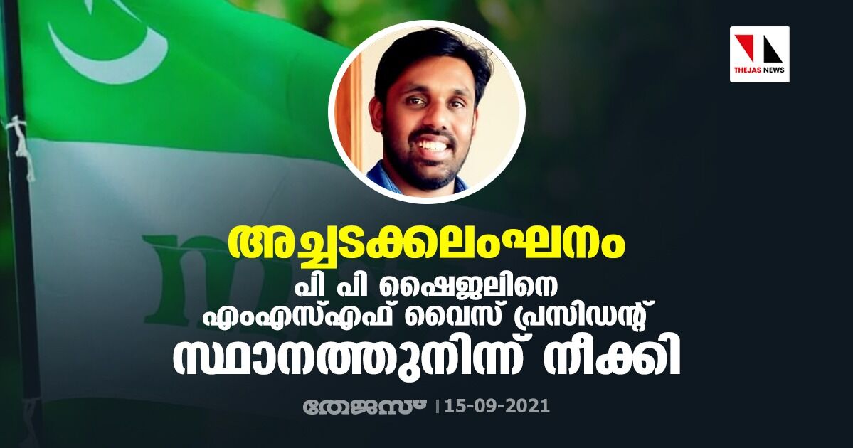 അച്ചടക്കലംഘനം; പി പി ഷൈജലിനെ എംഎസ്എഫ് വൈസ് പ്രസിഡന്റ് സ്ഥാനത്തുനിന്ന് നീക്കി