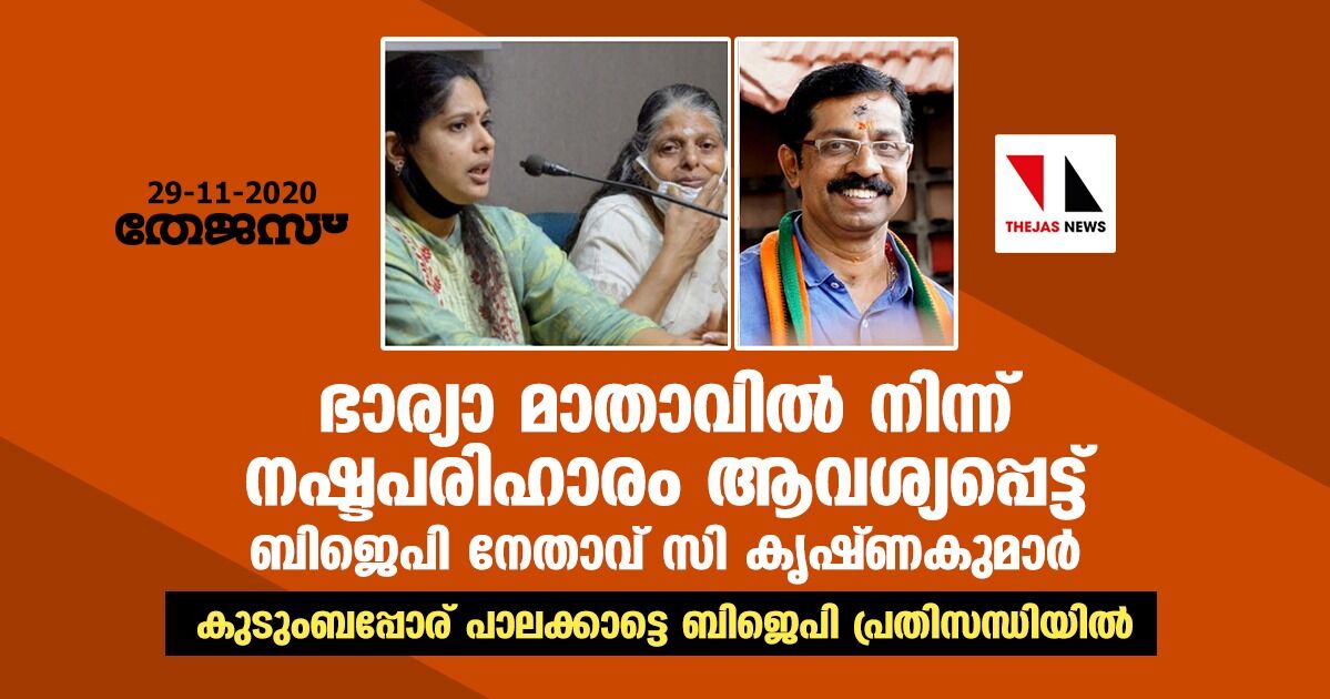 ഭാര്യാ മാതാവില് നിന്ന് നഷ്ടപരിഹാരം ആവശ്യപ്പെട്ട് ബിജെപി നേതാവ് സി കൃഷ്ണകുമാര്; കുടുംബപ്പോര് പാലക്കാട്ടെ ബിജെപി പ്രതിസന്ധിയിൽ
