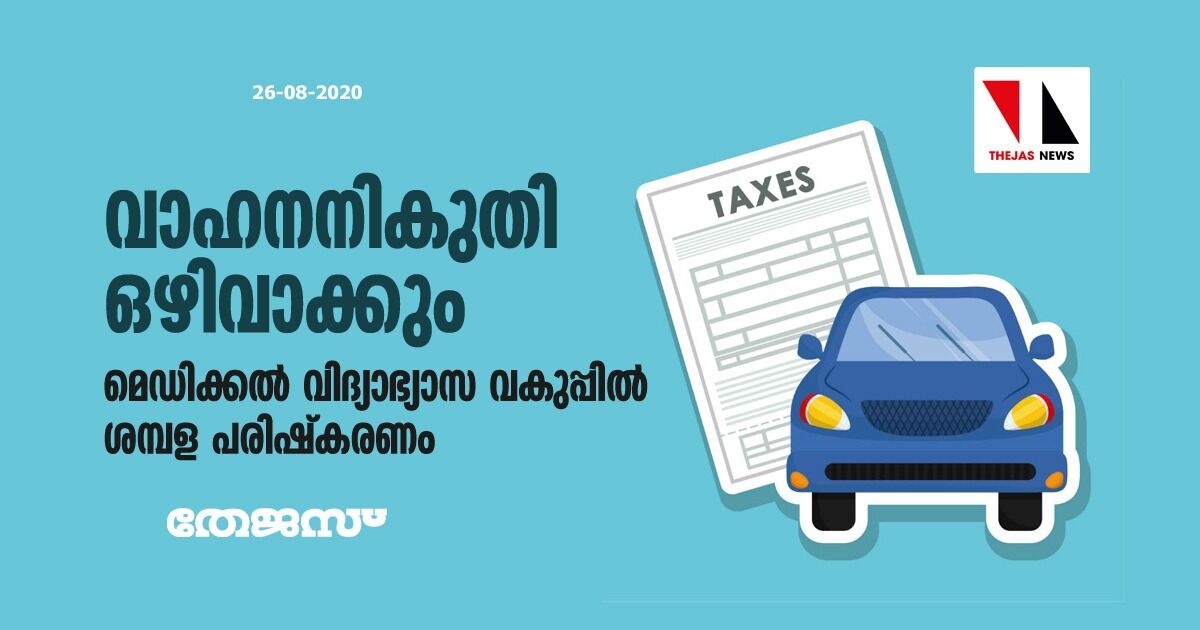 വാഹനനികുതി ഒഴിവാക്കും; മെഡിക്കല് വിദ്യാഭ്യാസ വകുപ്പില് ശമ്പള പരിഷ്കരണം