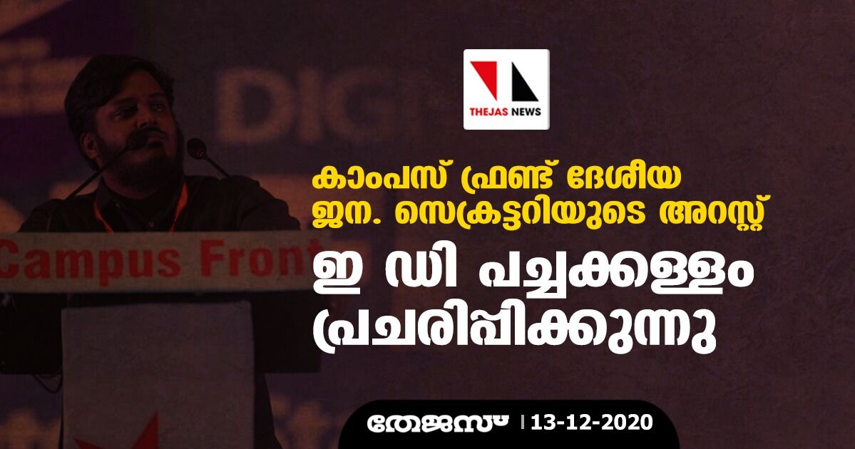 കാംപസ് ഫ്രണ്ട് ദേശീയ ജന. സെക്രട്ടറിയുടെ അറസ്റ്റ്: ഇ ഡി പച്ചക്കള്ളം പ്രചരിപ്പിക്കുന്നു