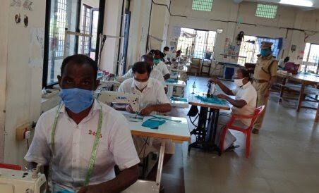 ജയിലിലെ അന്തേവാസികളില് രണ്ടുപേരാണ് കോട്ട് തുന്നുന്നതില് ഏര്പ്പെട്ടിരിക്കുന്നത്. 23 പേര് മുഴുവന് സമയവും മാസ്ക് നിര്മ്മാണത്തിൽ ഏര്പ്പെട്ടിരിക്കുകയാണ്.