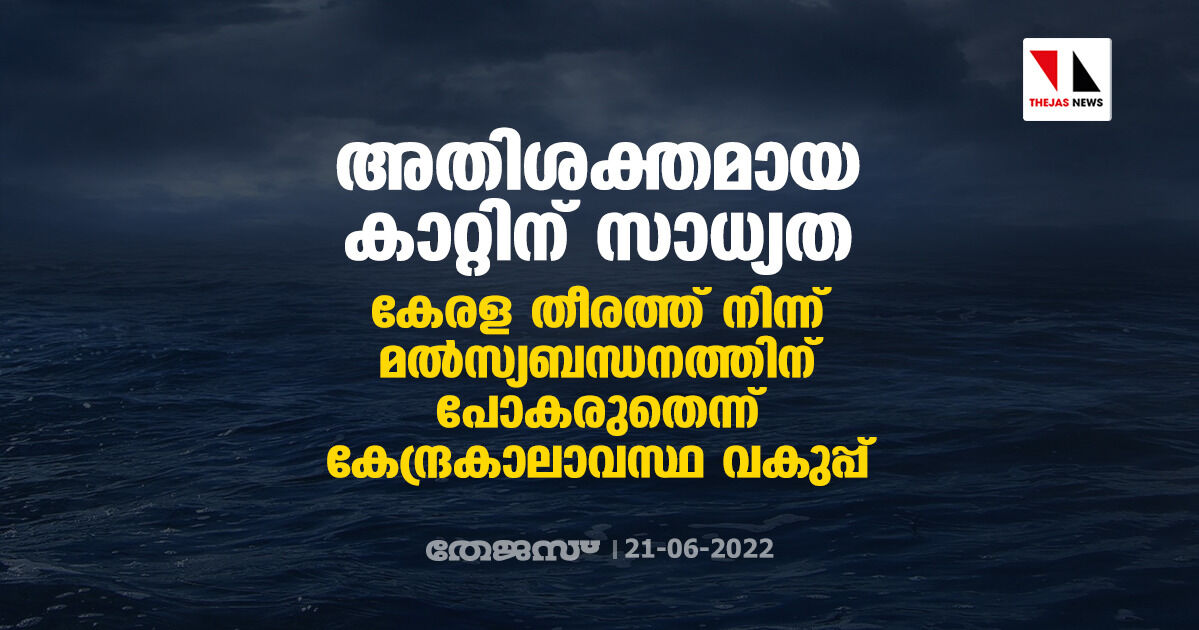 അതി ശക്തമായ കാറ്റിന് സാധ്യത ; കേരള തീരത്ത് നിന്ന് മല്സ്യബന്ധനത്തിന് പോകരുതെന്ന് കേന്ദ്രകാലാവസ്ഥ വകുപ്പ്