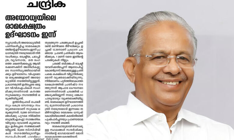 മലപ്പുറം: ബാബരി മസ്ജിദ് തകര്ത്ത സ്ഥലത്ത് നിര്മിക്കുന്ന രാമക്ഷേത്ര പ്രാണപ്രതിഷ്ഠ ചടങ്ങ് റിപ്പോര്ട്ട് ചെയ്തതില് മുസ്ലിം ലീഗ് മുഖപത്രമായ ചന്ദ്രികയ്ക്ക് വീഴ്ച്ച സംഭവിച്ചതായി ലീഗ് ദേശീയ ഓര്ഗനൈസിങ്ങ് സെക്രട്ടറി ഇ ടി മുഹമ്മദ് ബഷീര് എം പി. ബാബറി മസ്ജിദ് തകര്ത്താണ് അയോധ്യയില് ക്ഷേത്രം നിര്മ്മിച്ചത് എന്നത് വാര്ത്തയില് ഉള്പ്പെടാത്തത് പോരായ്മയാണ്.