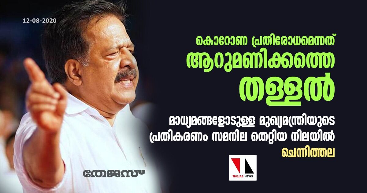 കൊറോണ പ്രതിരോധം എന്നത് ആറുമണിക്കത്തെ തള്ളൽ മാത്രമാണ് എന്ന നിലയിലേക്ക് കാര്യങ്ങൾ എത്തിയിരിക്കുന്നുവെന്നും ചെന്നിത്തല പറഞ്ഞു.