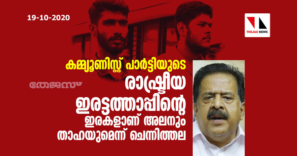 കമ്മ്യൂണിസ്റ്റ് പാര്ട്ടിയുടെ രാഷ്ട്രീയ ഇരട്ടത്താപ്പിന്റെ ഇരകളാണ് അലനും താഹയുമെന്ന് ചെന്നിത്തല