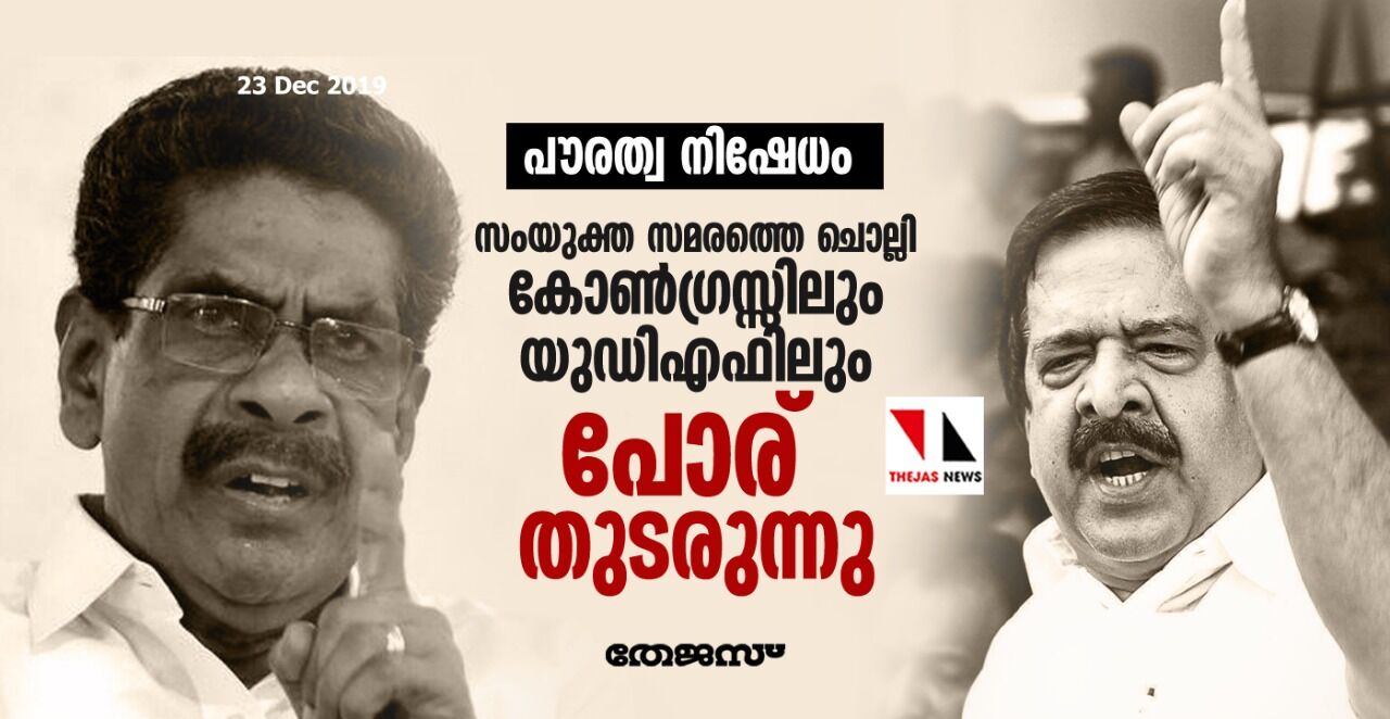 പൗരത്വ നിഷേധം: സംയുക്ത സമരത്തെ ചൊല്ലി കോണ്ഗ്രസ്സിലും യുഡിഎഫിലും പോര് തുടരുന്നു