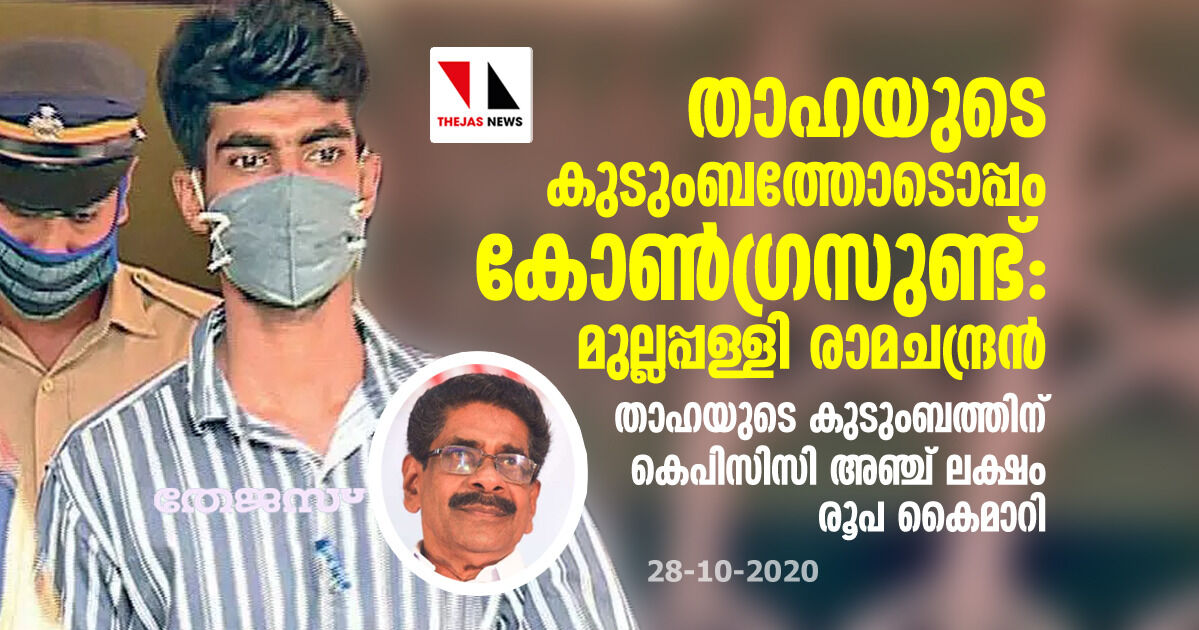 താഹയുടെ കുടുംബത്തിന് കെപിസിസി അഞ്ച് ലക്ഷം രൂപ കൈമാറി