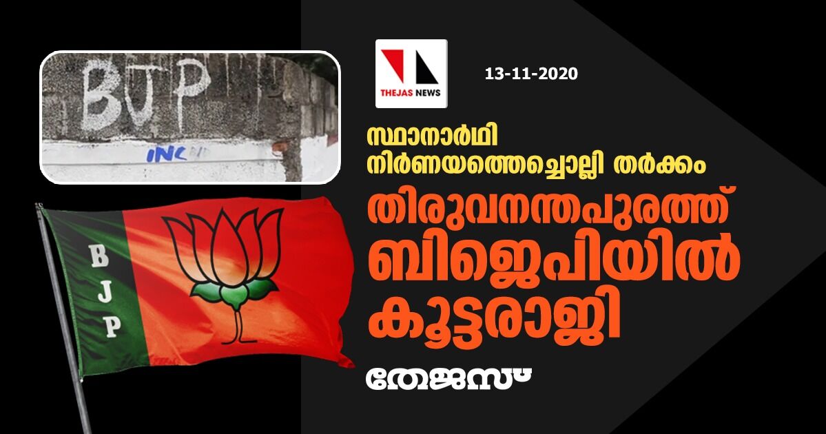 സ്ഥാനാര്ഥി നിര്ണയത്തെച്ചൊല്ലി തര്ക്കം; തിരുവനന്തപുരത്ത് ബിജെപിയില് കൂട്ടരാജി