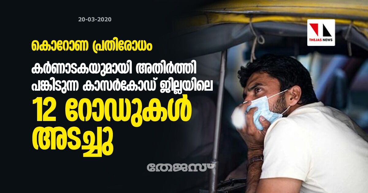 കർണാടകയുമായി അതിർത്തി പങ്കിടുന്ന കാസർകോഡ് ജില്ലയിലെ 12 റോഡുകൾ അടച്ചു
