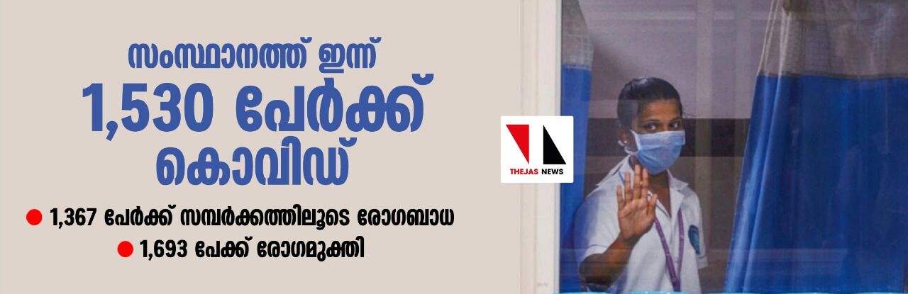 സംസ്ഥാനത്ത് ഇന്ന് 1,530 പേര്ക്ക് കൊവിഡ്; 1,367 പേര്ക്ക് സമ്പര്ക്കത്തിലൂടെ രോഗബാധ, 1,693 പേക്ക് രോഗമുക്തി