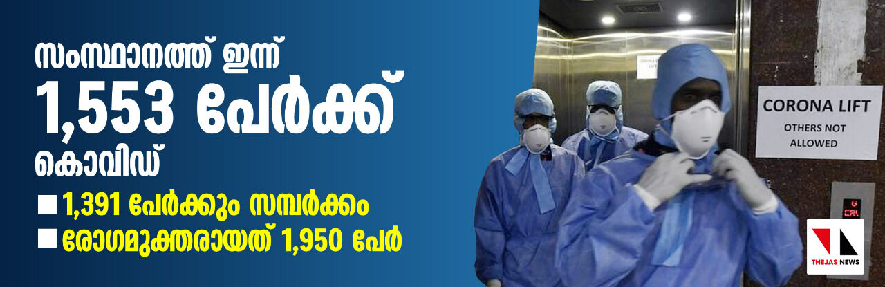 സംസ്ഥാനത്ത് ഇന്ന് 1,553 പേര്ക്ക് കൊവിഡ്; 1,391 പേര്ക്കും സമ്പര്ക്കം, രോഗമുക്തരായത് 1,950 പേര്