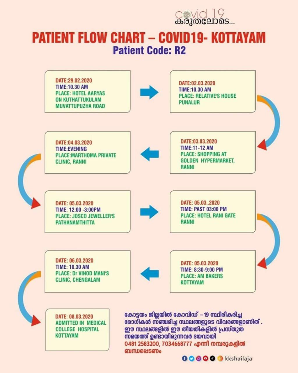 കോട്ടയത്ത് കൊവിഡ്- 19 സ്ഥിരീകരിച്ചവര് യാത്രചെയ്ത സ്ഥലങ്ങള്; റൂട്ട് മാപ്പ് പുറത്തുവിട്ട് ആരോഗ്യവകുപ്പ്