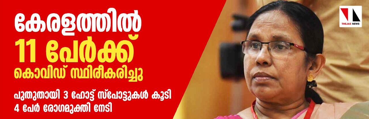കേരളത്തിൽ 11 പേര്ക്ക് കൂടി കൊവിഡ്; പുതുതായി 3 ഹോട്ട്സ്പോട്ടുകള്