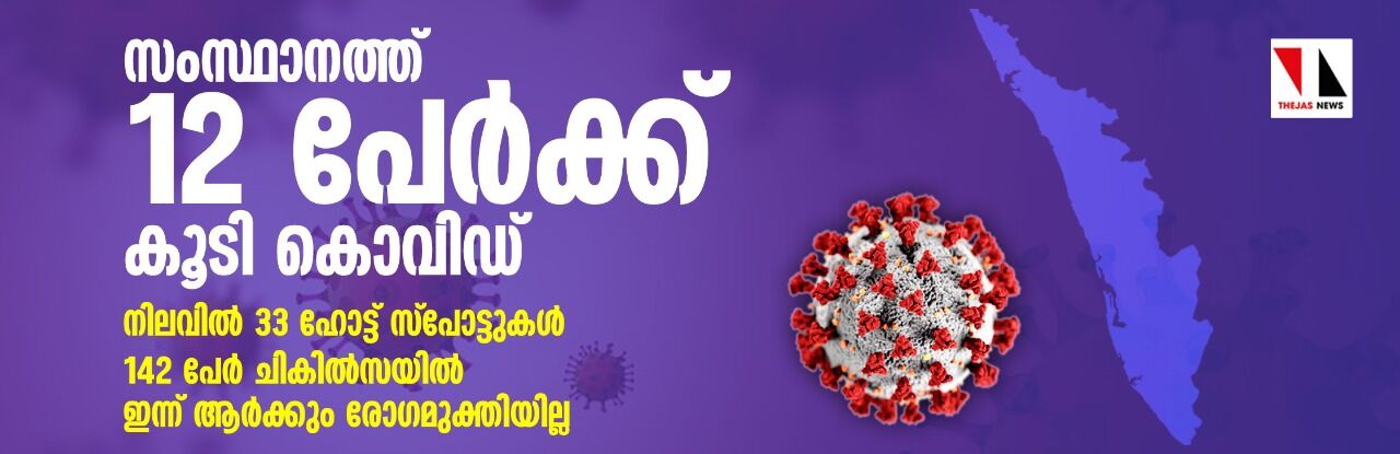 സംസ്ഥാനത്ത് 12 പേർക്ക് കൂടി കൊവിഡ്; 142 പേർ ചികിൽസയിൽ
