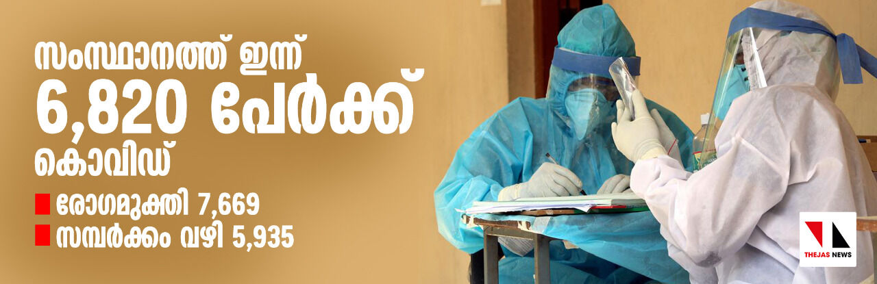പരിശോധിച്ചത് 61,388 സാമ്പിളുകള്; സംസ്ഥാനത്ത് ഇന്ന് 6820 പേര്ക്ക് കൊവിഡ്, 26 മരണം