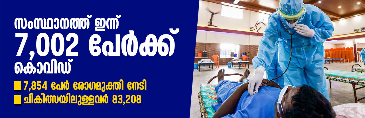 സംസ്ഥാനത്ത് ഇന്ന് 7002 പേര്ക്ക് കൊവിഡ്; 63,384 സാമ്പിളുകള് പരിശോധിച്ചു