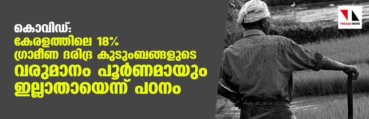 കൊവിഡ്: കേരളത്തിലെ 18 ശതമാനം ഗ്രാമീണ ദരിദ്ര കുടുംബങ്ങളുടെ വരുമാനം പൂര്ണമായും ഇല്ലാതായെന്ന് പഠനം
