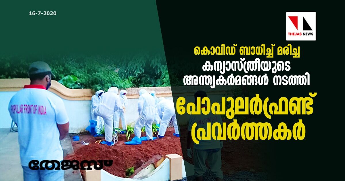 കൊവിഡ് ബാധിച്ച് മരിച്ച കന്യാസ്ത്രീയുടെ അന്ത്യകര്മങ്ങള് നടത്തി പോപുലര്ഫ്രണ്ട് പ്രവര്ത്തകര്