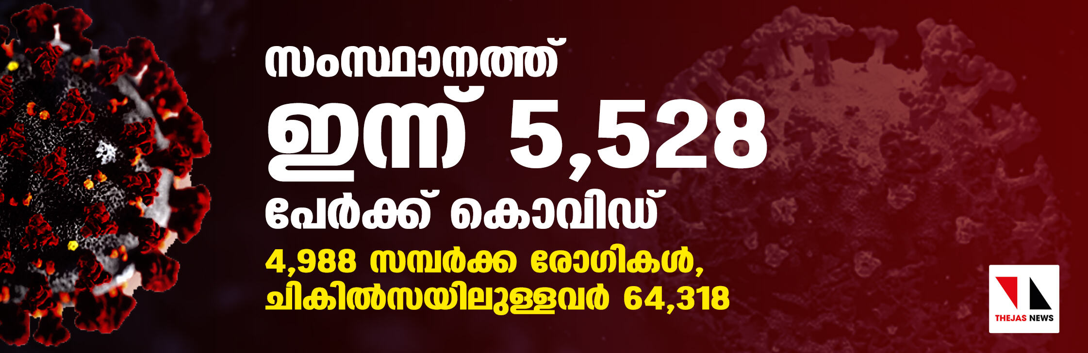 സംസ്ഥാനത്ത് ഇന്ന് 5,528 പേര്ക്ക് കൊവിഡ്; 4,988 സമ്പര്ക്കരോഗികള്, ചികില്സയിലുള്ളവര് 64,318