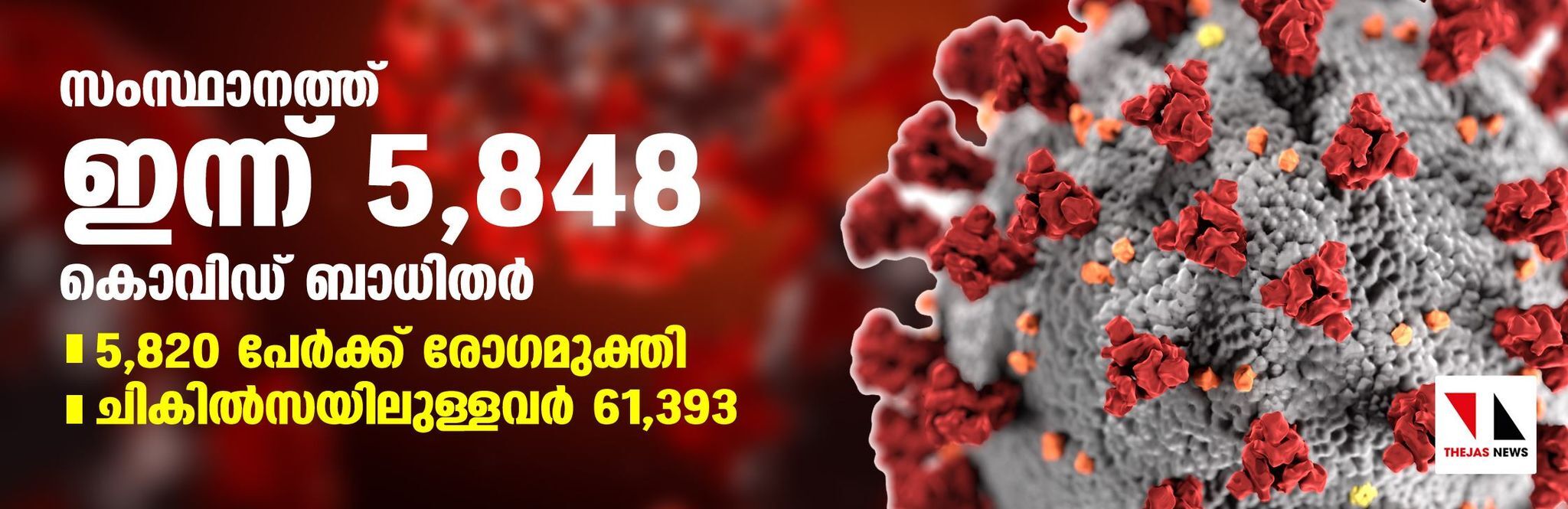 സംസ്ഥാനത്ത് ഇന്ന് 5,848 കൊവിഡ് ബാധിതര്; 5,820 പേര്ക്ക് രോഗമുക്തി, ചികില്സയിലുള്ളവര് 61,393