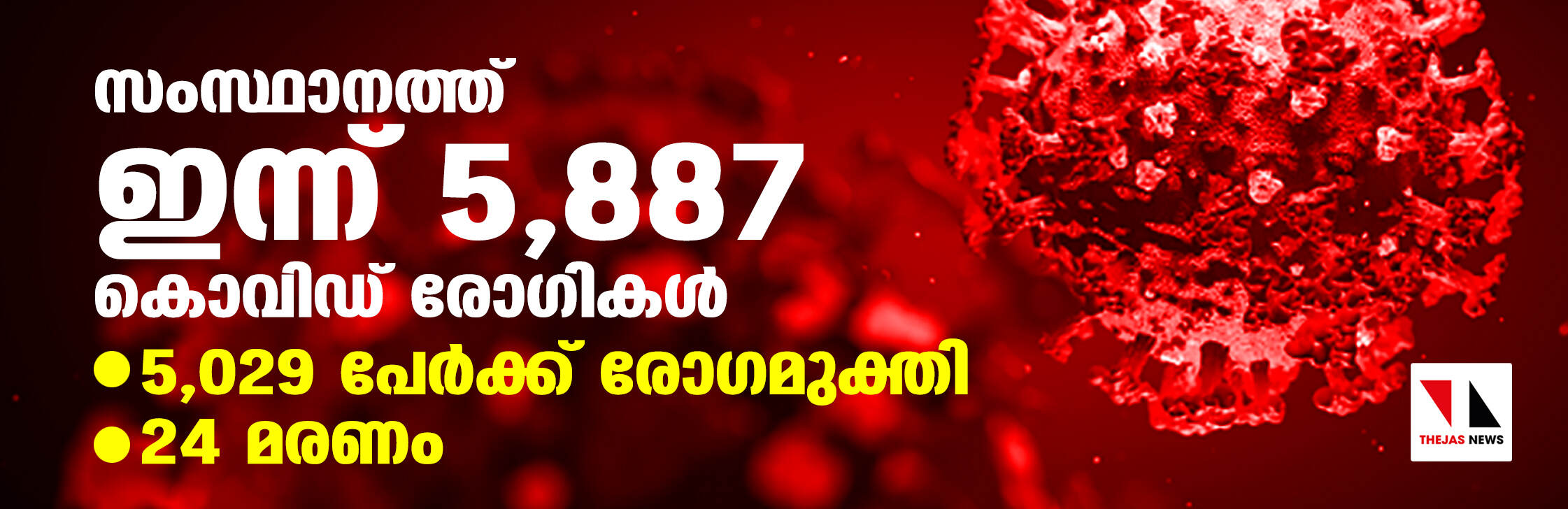 സംസ്ഥാനത്ത് ഇന്ന് 5,887 കൊവിഡ് രോഗികള്; 5,029 പേര്ക്ക് രോഗമുക്തി, 24 മരണം