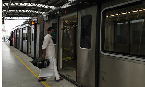 ലോക്ഡൗണിനെ തുടര്ന്നു കഴിഞ്ഞ മാര്ച്ച് 23 മുതല് സര്വീസുകള് നിര്ത്തിവച്ചിരുന്നു. അണ്ലോക്ക് നാലില് മെട്രൊ സര്വീസുകള് പുനരാരംഭിക്കാന് കഴിഞ്ഞയാഴ്ചയാണ് കേന്ദ്ര സര്ക്കാര് പച്ചക്കൊടി കാട്ടിയത്. കര്ശന നിബന്ധനകളോടെയാണ് മെട്രൊ സര്വീസുകള് തുടങ്ങുന്നത്. യാത്രക്കാര്ക്ക് സാമൂഹിക അകലം പാലിച്ച് ഇരിക്കുന്നതിനായി സീറ്റുകളില് അടയാളങ്ങള് ചെയ്തിട്ടുണ്ട്. നിന്നു യാത്ര ചെയ്യുന്നതിനായി പ്രത്യേകം അടയാളപ്പെടുത്തിയ സ്ഥലങ്ങളില് മാത്രമായിരിക്കും അനുവാദം