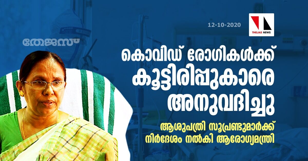 കൊവിഡ് രോഗികള്ക്ക് കൂട്ടിരിപ്പുകാരെ അനുവദിച്ചു; ആശുപത്രി സൂപ്രണ്ടുമാര്ക്ക് നിര്ദേശം നല്കി ആരോഗ്യമന്ത്രി