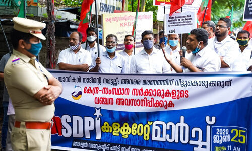പ്രവാസികള് നാടിന്റെ നട്ടെല്ല്,അവരെ മരണത്തിന് വിട്ട് കൊടുക്കരുത് എന്നാവശ്യപ്പെട്ട് കൊണ്ട് എസ്ഡിപിഐ എറണാകുളം ജില്ലാ കമ്മിറ്റി കലക്ട്രേറ്റിലേക്ക് മാര്ച്ച് നടത്തി.ജില്ലാ പ്രസിഡന്റ് ഷെമീര് മാഞ്ഞാലി ഉദ്ഘാടനം ചെയ്തു.പ്രവാസികളുടെ കാര്യത്തില് ജനങ്ങള്ക്കിടയില് കുത്തിത്തിരിപ്പുണ്ടാക്കുന്നത് മുഖ്യമന്ത്രിയാണെന്നും മുന്നൂറിലധികം പ്രവാസികള് ഗള്ഫ് രാജ്യങ്ങളില് മരണപ്പെടാനിടയായതിന് ഉത്തരവാദി സംസ്ഥാന സര്ക്കാര് മാത്രമാണെന്നും ഷെമീര് മാഞ്ഞാലി പറഞ്ഞു