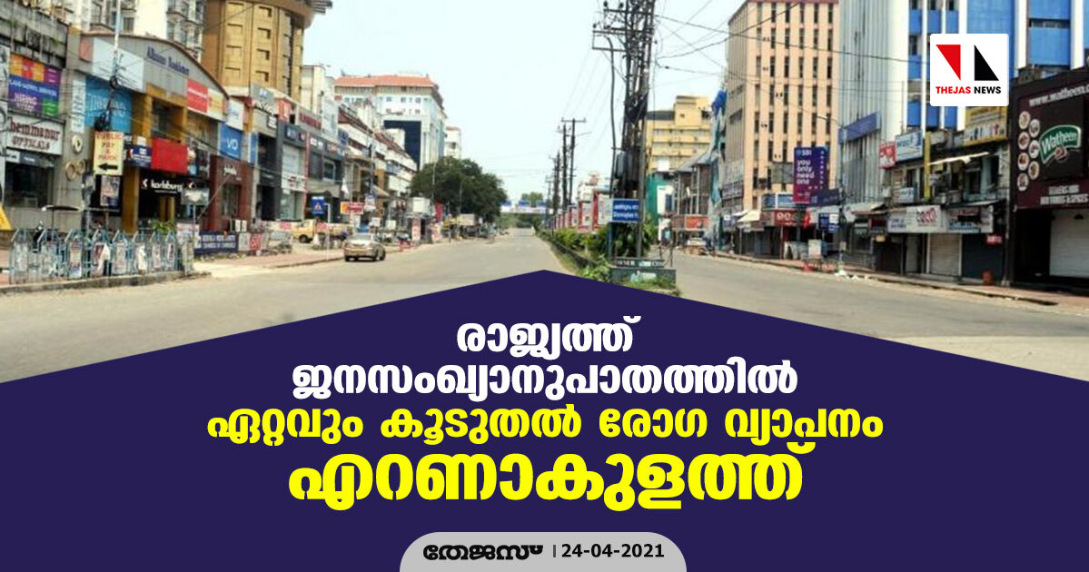 രാജ്യത്ത് ജനസംഖ്യാനുപാതത്തില് ഏറ്റവും കൂടുതല് രോഗ വ്യാപനം എറണാകുളത്ത്