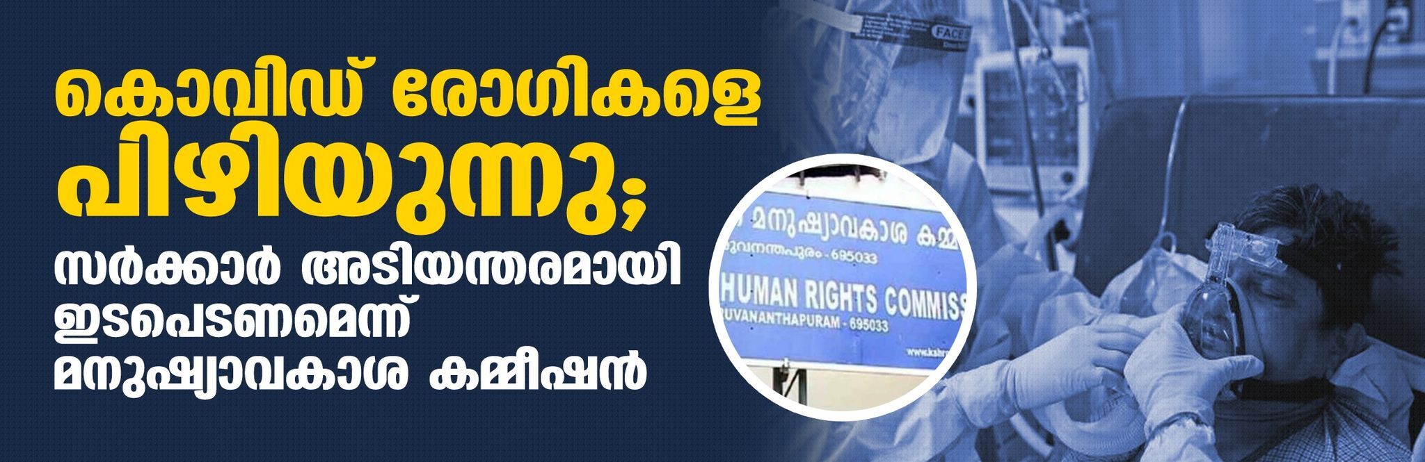 കൊവിഡ് രോഗികളെ പിഴിയുന്നു; സര്ക്കാര് അടിയന്തിരമായി ഇടപെടണമെന്ന് മനുഷ്യാവകാശ കമ്മീഷന്