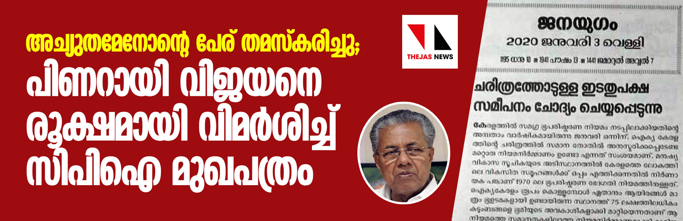 സി അച്യുതമേനോന്റെ പേര് തമസ്കരിച്ചു; പിണറായി വിജയനെ രൂക്ഷമായി വിമര്ശിച്ച് സിപിഐ മുഖപത്രം