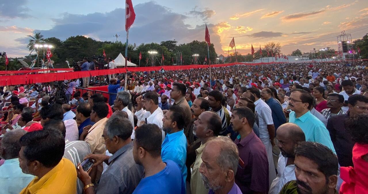 മൂന്നു ദിവസമായി തിരുവനന്തപുരത്ത് നടന്ന കേന്ദ്ര കമ്മിറ്റി യോഗത്തിന്റെ സമാപനത്തോട് അനുബന്ധിച്ച് പുത്തരിക്കണ്ടം മൈതാനിയിൽ സംഘടിപ്പിച്ച നയവിശദീകരണ യോഗത്തിൽ നഗരം സ്തംഭിപ്പിക്കും വിധത്തിൽ ജനം ഒഴുകിയെത്തി.