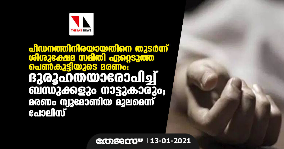 പീഡനത്തിനിരയായതിനെ തുടര്ന്ന് ശിശുക്ഷേമ സമിതി ഏറ്റെടുത്ത പെണ്കുട്ടിയുടെ മരണം: ദുരൂഹതയാരോപിച്ച് ബന്ധുക്കളും നാട്ടുകാരും; മരണം ന്യൂമോണിയമൂലമെന്ന് പോലിസ്