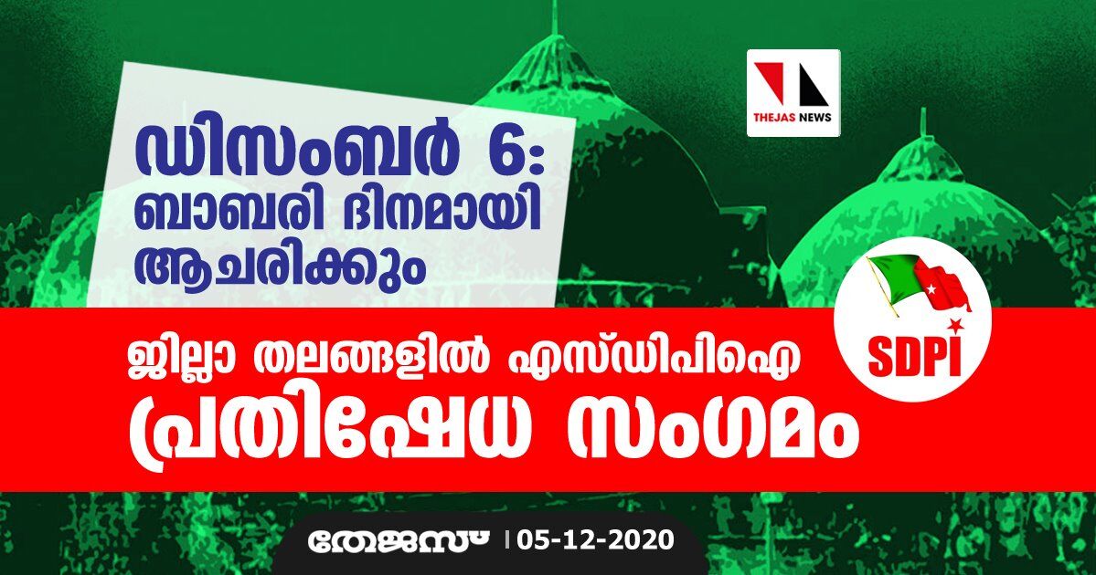ഡിസംബര് 6: ബാബരി ദിനമായി ആചരിക്കും; ജില്ലാ തലങ്ങളില് എസ് ഡിപിഐ പ്രതിഷേധ സംഗമം