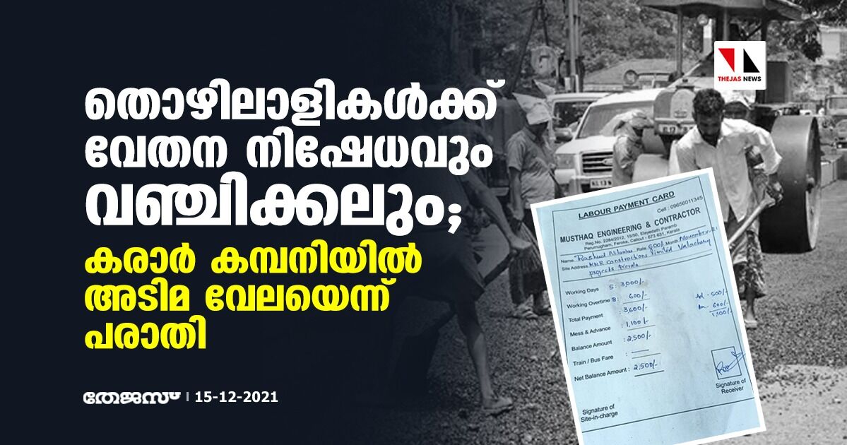 തൊഴിലാളികള്ക്ക് വേതന നിഷേധവും വഞ്ചിക്കലും; കരാര് കമ്പനിയില് അടിമ വേലയെന്ന് പരാതി