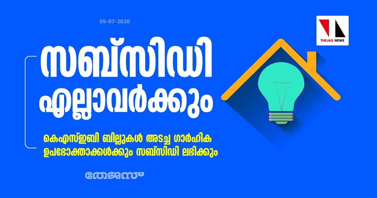 കെഎസ്ഇബി ബില്ലുകൾ അടച്ച ഗാർഹിക ഉപഭോക്താക്കൾക്കും സബ്സിഡി ലഭിക്കും